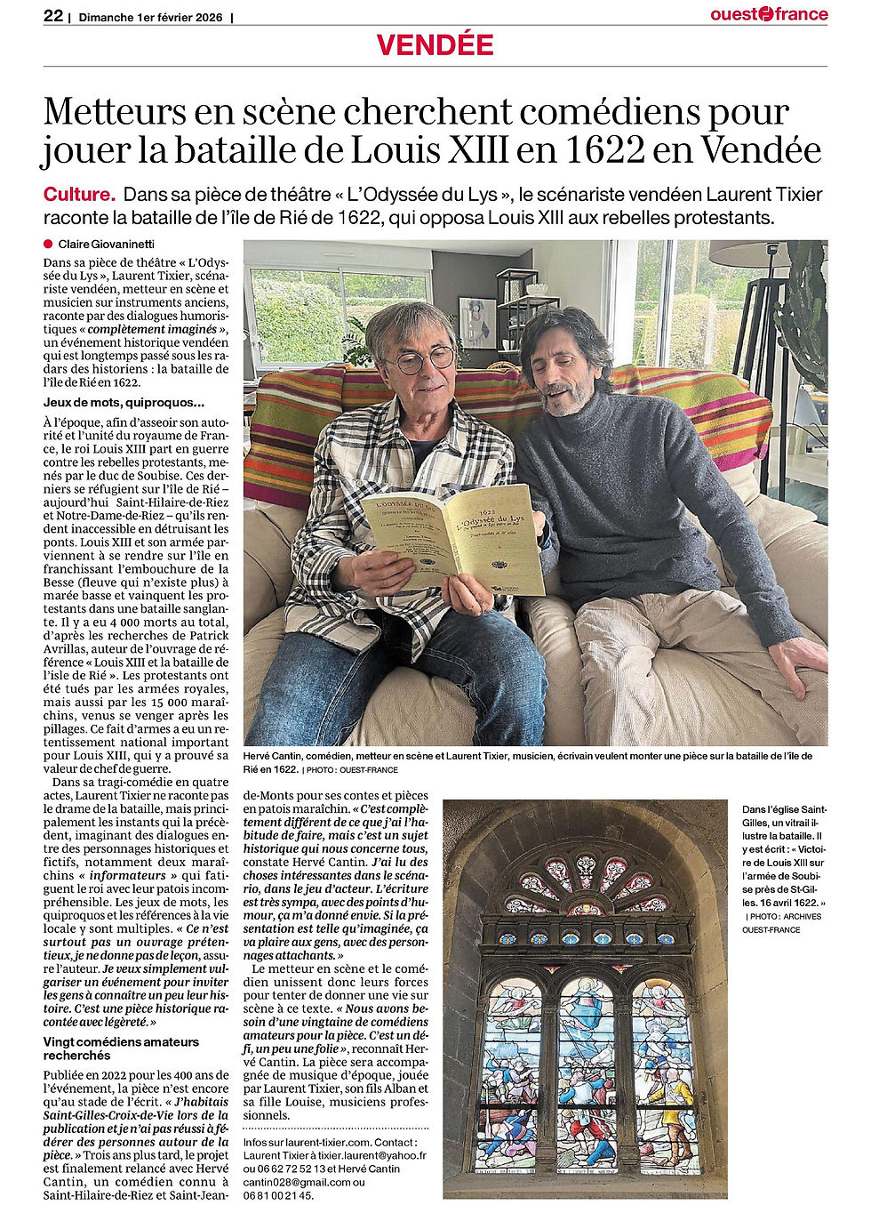 Écrite par le scénariste vendéen Laurent Tixier, la pièce retrace la campagne de Louis XIII en 1622, et plus particulièrement la bataille de l’île de Rié, un moment charnière des conflits religieux qui ont marqué le territoire. À travers une tragi-comédie accessible et vivante, le spectacle propose de porter un regard contemporain sur cette période, tout en valorisant la mémoire locale.